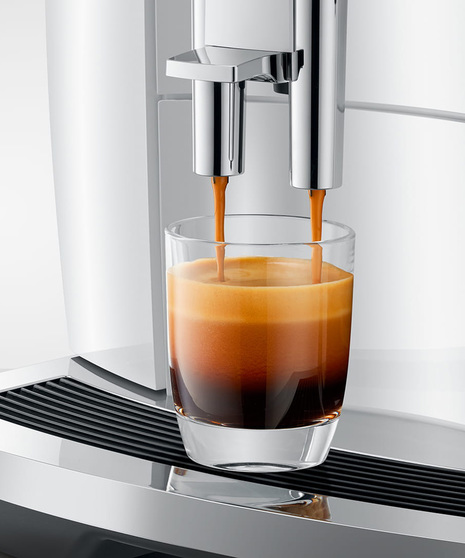 For coffee purists, the JURA E4 Automatic Coffee Machine is all about preparing perfect coffee results – freshly ground, not capsuled. Tap the espresso or coffee button twice for a true double shot, and the machine will grind, tamp and brew twice for maximum flavor and aroma.