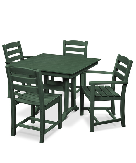 Gather around the table for a laid back meal outdoors with the La Casa Café 5-Piece Farmhouse Dining Set with Trestle Legs. This classic set seats up to four guests for a relaxed outdoor dining experience. The La Casa Café Dining Chairs are contoured for comfort while the Farmhouse 37" Dining Table provides plenty of legroom underneath.