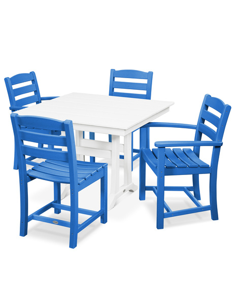 Gather around the table for a laid back meal outdoors with the La Casa Café 5-Piece Farmhouse Dining Set with Trestle Legs. This classic set seats up to four guests for a relaxed outdoor dining experience. The La Casa Café Dining Chairs are contoured for comfort while the Farmhouse 37" Dining Table provides plenty of legroom underneath.