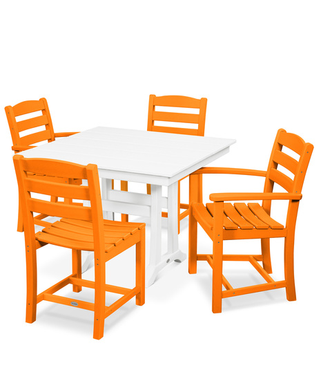 La Casa Café 5-Piece Farmhouse Dining Set with Trestle Legs Tangerine/White