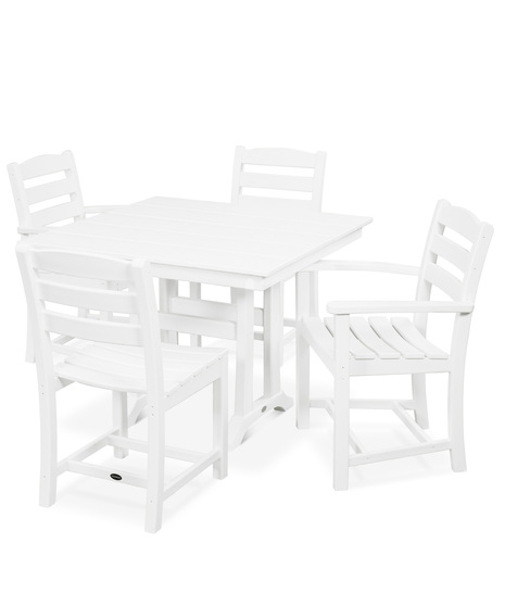 Gather around the table for a laid back meal outdoors with the La Casa Café 5-Piece Farmhouse Dining Set with Trestle Legs. This classic set seats up to four guests for a relaxed outdoor dining experience. The La Casa Café Dining Chairs are contoured for comfort while the Farmhouse 37" Dining Table provides plenty of legroom underneath.